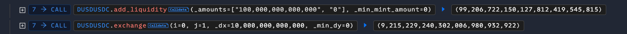 Market Distortion: The attacker deployed roughly 170 million USDC into the DUSD/USDC Curve pool. This unbalanced the pool significantly, distorting the output of