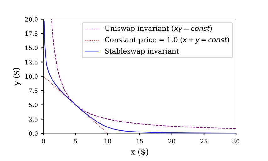 The Amplified Invariant combines the benefits of both: low slippage near balance and flexibility for imbalanced trades. The characteristic of the amplification coefficient parameter in StableSwap is that the lower it is, the closer the invariant is to the constant product.