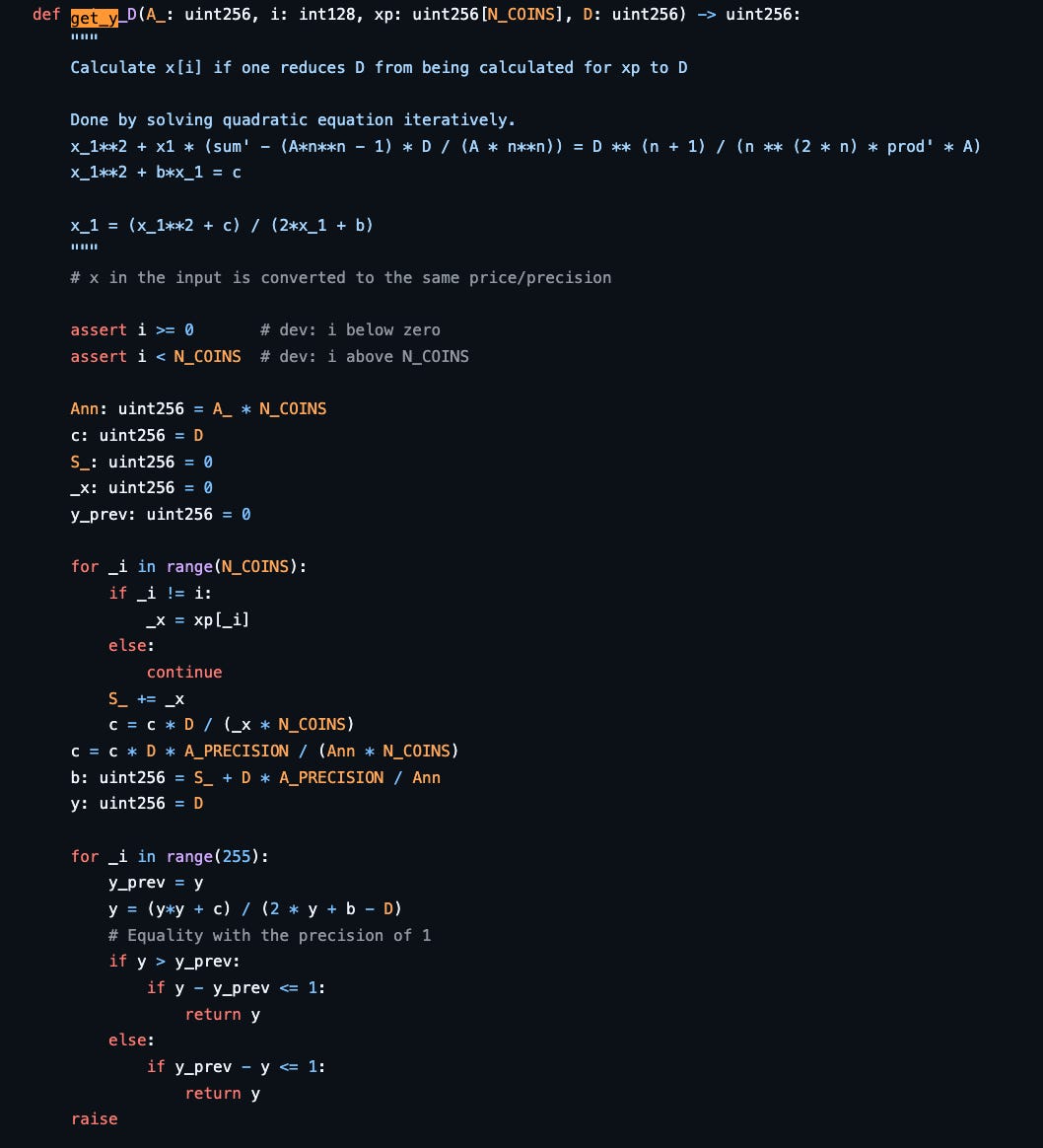 StableSwap-Newton's method for y is: