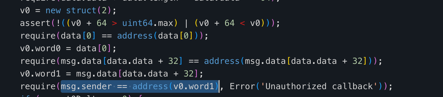 However, the function checks the msg.sender against the data parameter instead of verifying whether the msg.sender is the pool. This allows anyone to call this function with data that includes their own address.