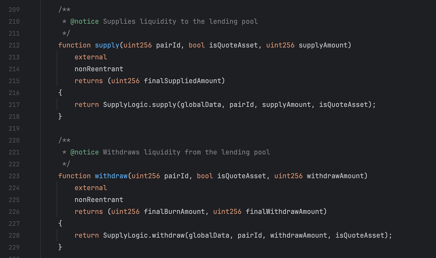 We can notice that the supply function has the nonReentrant modifier to protect the pool from reentrancy attacks. However, the trade function does not have this modifier, so this reentrancy attack can be executed successfully. Finally, the attacker completed the exploit, moving all the liquidity of the (USDC, WETH) pair into his new pair. After the reentrancy attack and completion of the trade call, the attacker can drain all the assets of the pool by withdrawing the liquidity from his pair.